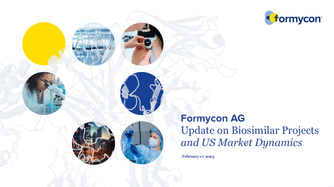 Der Vorstand der Formycon AG hat die jüngsten Entwicklungen bei verschiedenen Biosimilar-Projekten im Rahmen eines Webcasts erörtert. Das Replay des Webcasts ist unter folgendem Link verfügbar: Formycon Update Februar 2025.